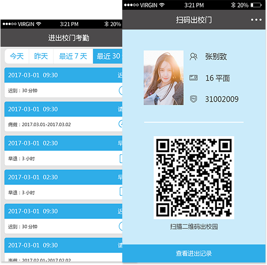 使用智嵌学生综合管理平台后,学生考勤更加方便、快捷,考勤信息可以与请假信息联动,节省了班主任的工作量;学生可以自己查询成绩及补考科目,并在网上填报补考科目及查询补考成绩。