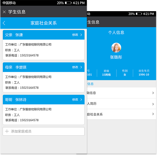 使用智嵌学生综合管理平台后,对学生档案数据进行了统一管理,各部门可以查询到学生的异动信息,并可以实现网上报名注册、在线缴费及招生情况的查询统计。